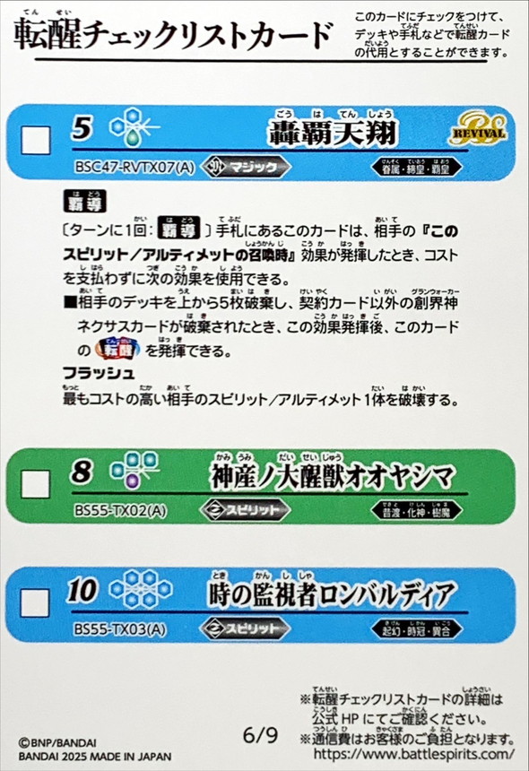 (2025/無)(転醒チェックリスト)BSC47チェックリスト6【-】{BSC47-RVTX07/BS55-TX02/BS55-TX03}《無》