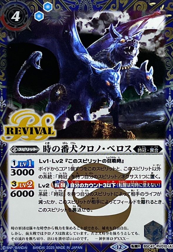 (2025/12)(SECRET)時の番犬クロノ・ベロス/時の狭間【転醒R-SEC】{BSC47-RV010a/BSC47-RV010b}《青》