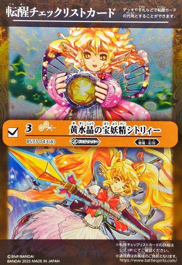 (2025/無)(転醒チェックリスト)黄水晶の宝妖精シトリィー/黄水晶の魔宝少女シトリィー【-】{BS73-043a/BS73-043b}《黄》