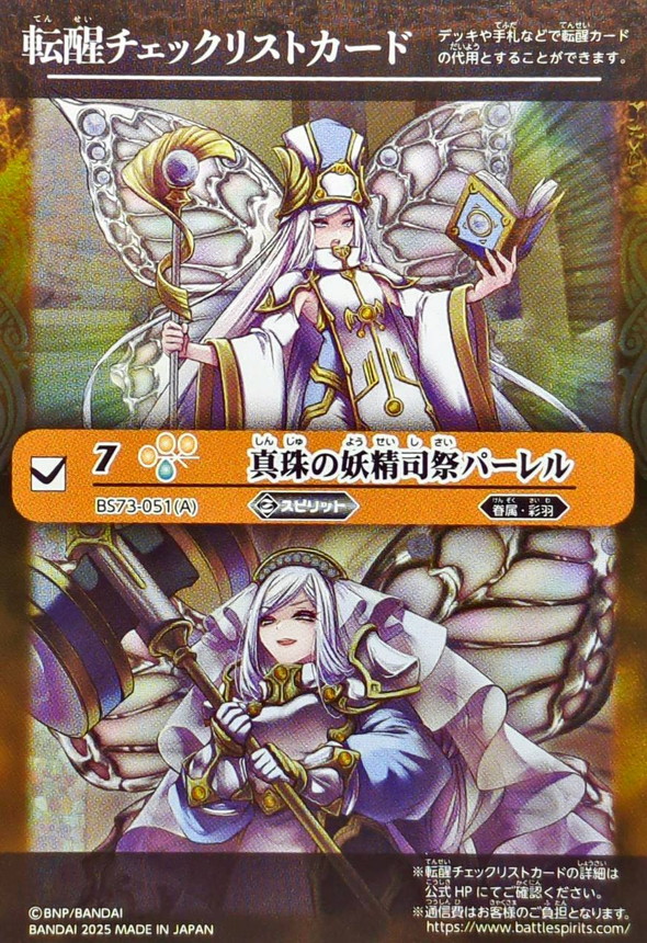 (2025/無)(転醒チェックリスト)真珠の妖精司祭パーレル/真珠の妖聖騎士パーレル【-】{BS73-051a/BS73-051b}《黄》