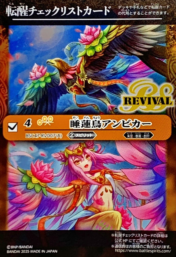 〔状態A-〕(2025/無)(転醒チェックリスト)睡蓮鳥アンビカー/睡蓮女神アンビカー【-】{BSC47-RV007}《黄》