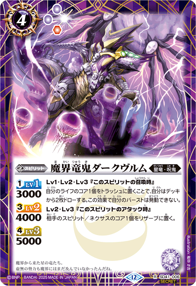 (2025/12)(SECRET)魔界竜鬼ダークヴルム(BSC50収録)【R-SEC】{SD41-006}《紫》
