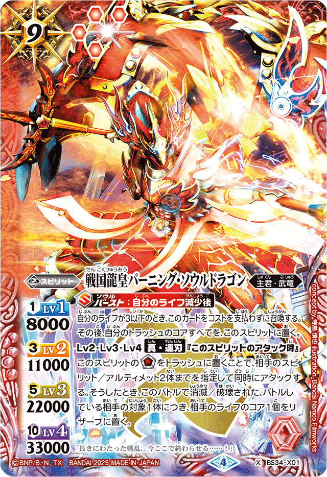 〔状態A-〕(2025/4)戦国龍皇バーニング・ソウルドラゴン(イラスト違い/PB43収録)【X】{BS34-X01}《赤》 [〔状態A-〕センゴクリュウオウバーニングソウルドラゴン]