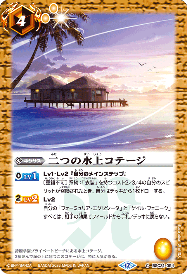 (2026/12)二つの水上コテージ(BSC51収録)【C】{BSC31-054}《黄》