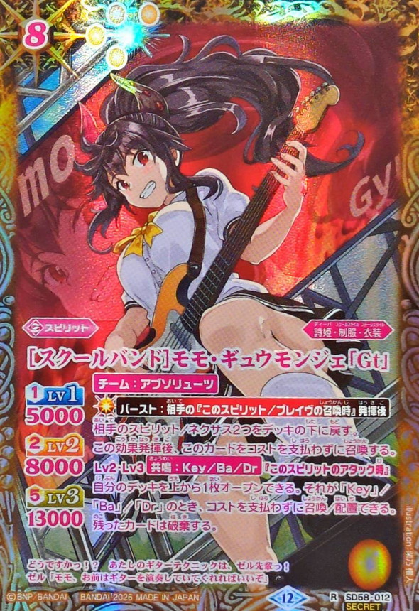 (2026/12)(SECRET)[スクールバンド]モモ・ギュウモンジェ「Gt」(BSC51収録)【R-SEC】{SD58-012}《黄》