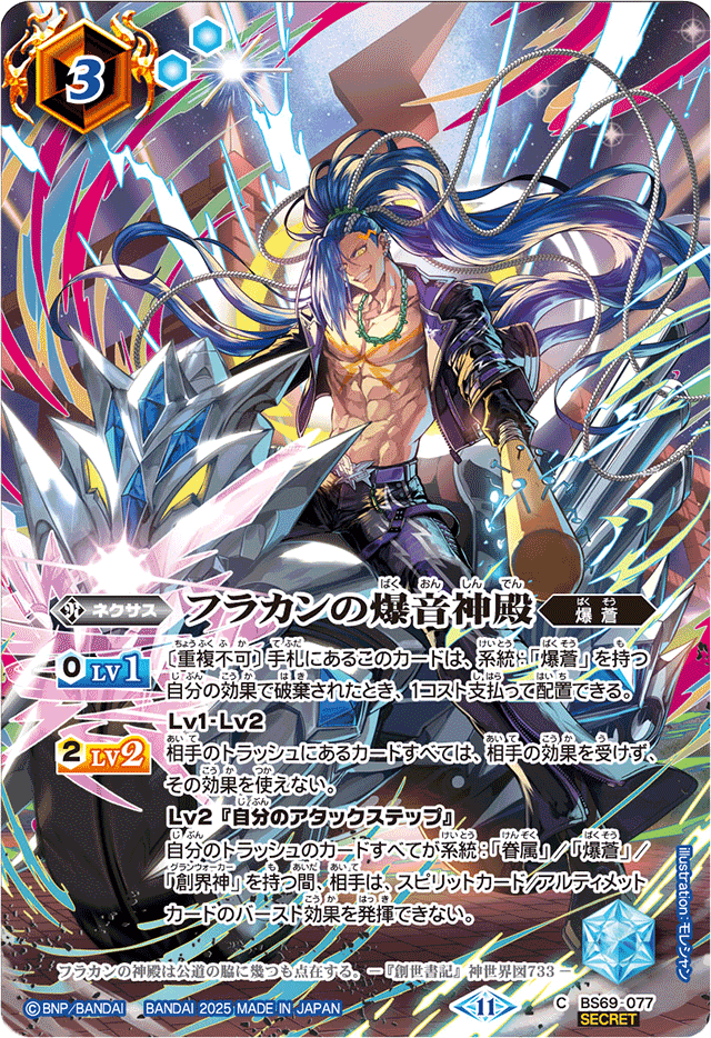(2025/11)(SECRET)フラカンの爆音神殿(BS74収録/フラカンイラスト)【C-SEC】{BS69-077}《青》