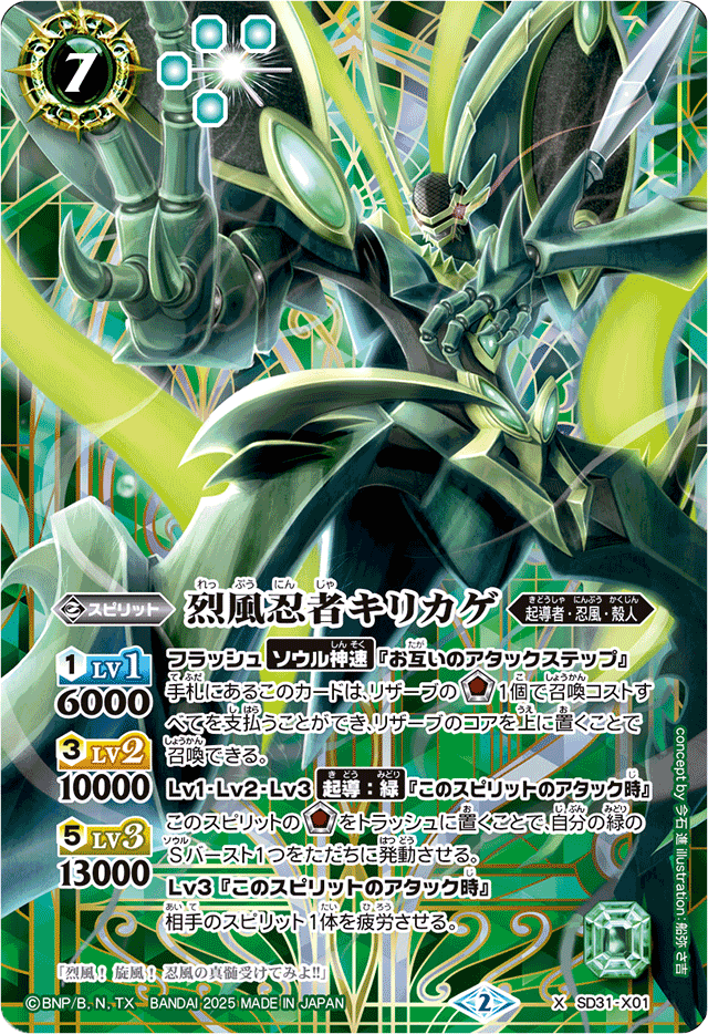 (2025/2)烈風忍者キリカゲ(背景シンボル/PB43収録)【X】{SD31-X01}《緑》