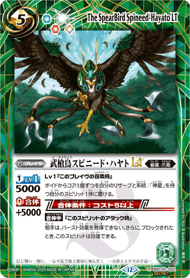 (2025/12)(SECRET)武槍鳥スピニード・ハヤトLT【R-SEC】{BSC50-022}《緑》