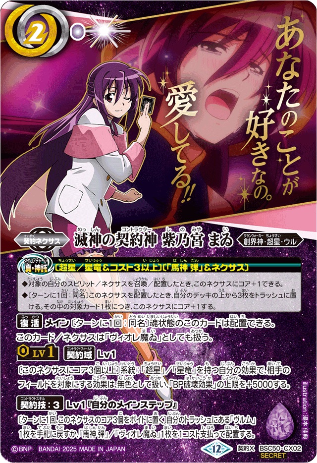 (2025/12)(SECRET)滅神の契約神紫乃宮まゐ(アニメ背景)【契約X-SEC】{BSC50-CX02}《紫》
