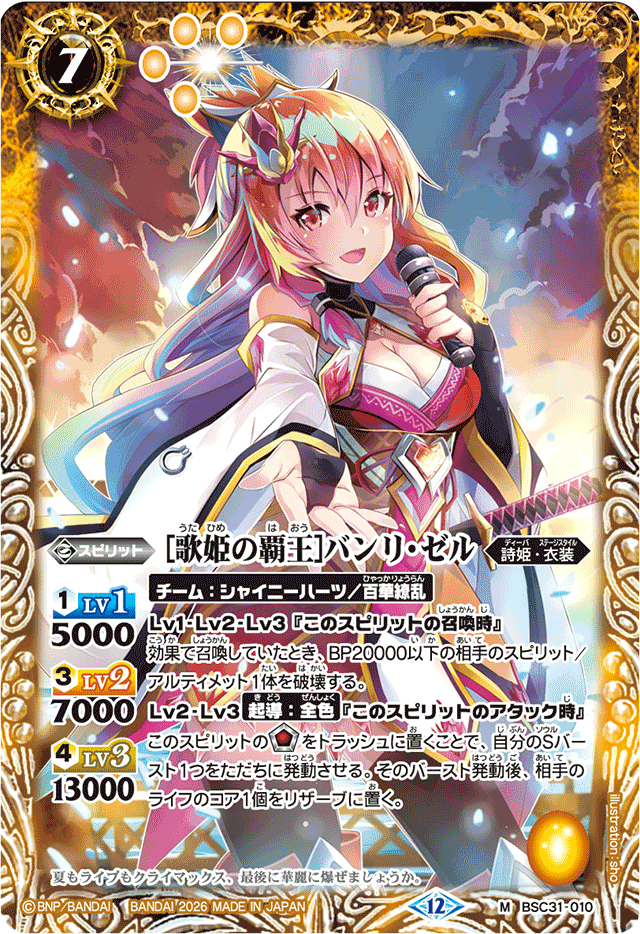 (2026/12)[歌姫の覇王]バンリ・ゼル(BSC51収録)【M】{BSC31-010}《黄》