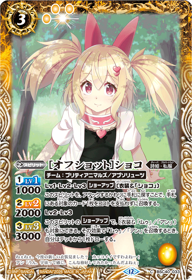 (2026/12)[オフショット]ショコ(BSC51収録)【C】{BSC40-033}《黄》