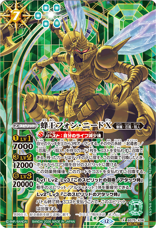 (2026/12)(SECRET)蜂王フォン・ニードX【X-SEC】{BS75-X06}《緑》 [ホウオウフォンニードX]